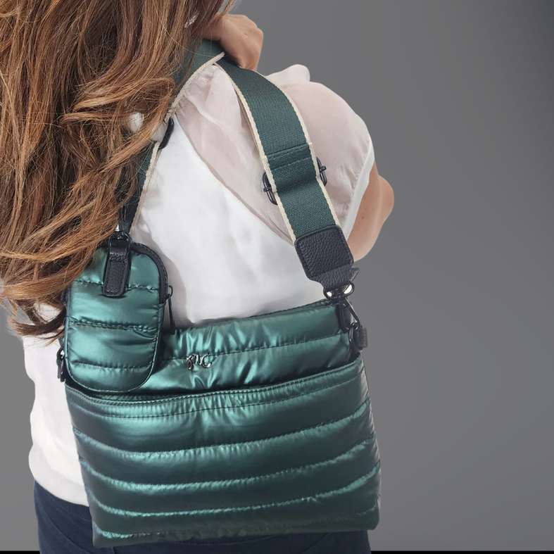 With its quilted style, bold colours, and adjustable strap, this crossbody was built for comfort and style.