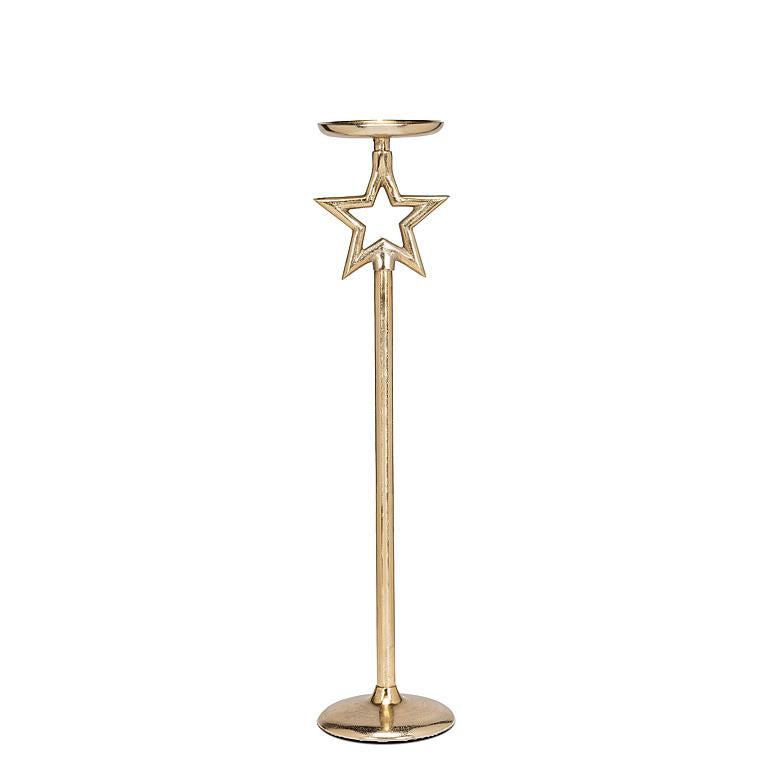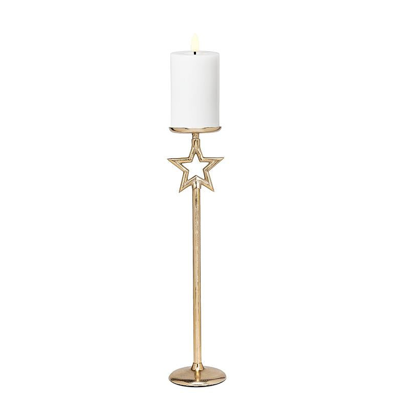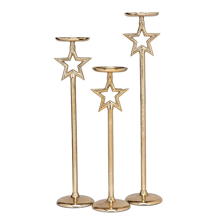 Add whimsy to your decor with these layering pieces. The pillar candle holder is good for floor use or to add height and interest to shelves. Combine the set together for a varying height dimension. Star piece is removeable.